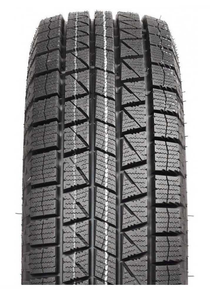 Основу изделия формирует ненаправленный протектор из пяти продольных ребер, каждое из которых разделено на отдельные блоки. Центральная зона выполнена в виде ромбовидных элементов с заостренными кромками, способными активно цепляться за скользкую дорогу. Подобная геометрия улучшает удержание автомашины в поворотах и повышает точность реакции на рулевые команды на ледяном и заснеженном полотне. Плечевые области также имеют выраженную структурированность, что положительно влияет на устойчивость при маневрировании и придает транспортному средству дополнительную опору при резком торможении.