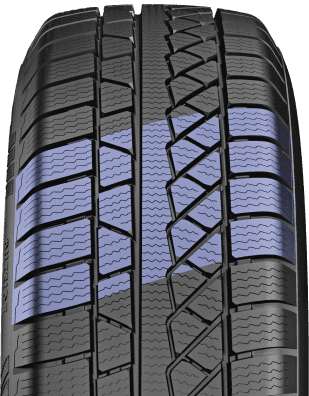 Основное отличие модели — повышенная проходимость в зимний сезон. Благодаря специальному профилю и оптимальной геометрии блочных элементов протектора, покрышка легко справляется с рыхлым снегом, ледяной коркой и холодным дорожным полотном. Направленный рисунок эффективно захватывает снежный наст, повышая тяговые характеристики при старте и ускорении. Канавки с переменной глубиной быстро отводят слякоть и талую воду, предотвращая скольжение и гарантируя надёжную курсовую устойчивость.